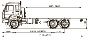 Шасси 6*6, длина рамы мм, грузоподъемность 12 тонн
